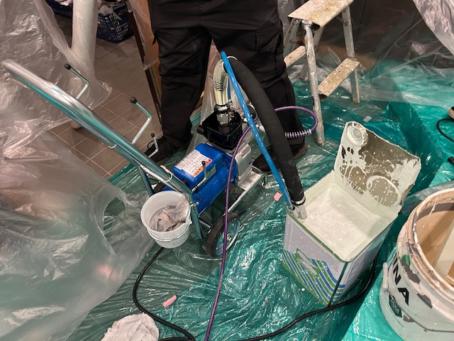 水性エポキシ系の下塗り材で塗布し仕上げが内装用アクリル樹脂で仕上げました。