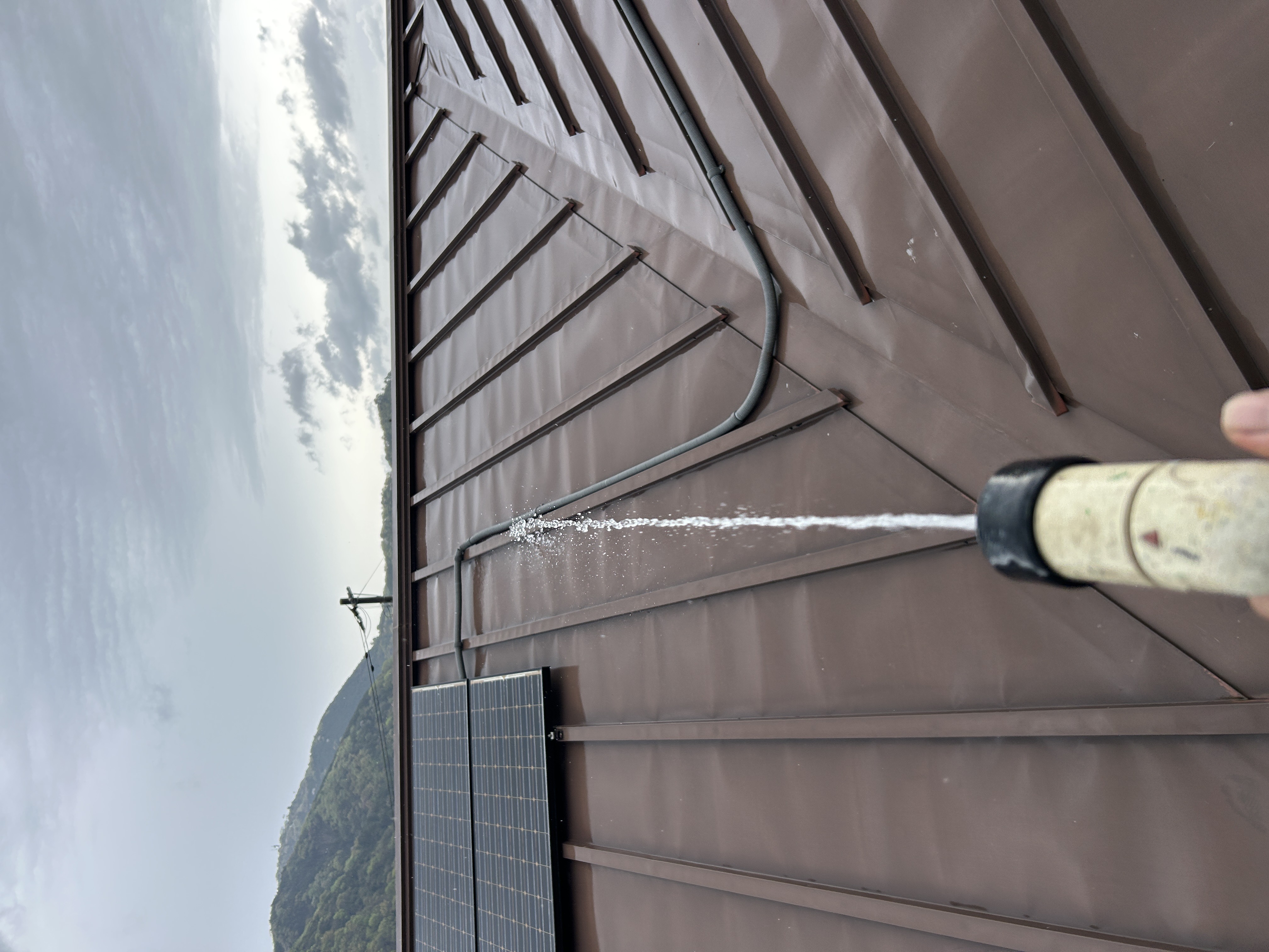 屋根に上り雨漏りの箇所の確認と室内雨漏り箇所の確認をさせて頂きました。