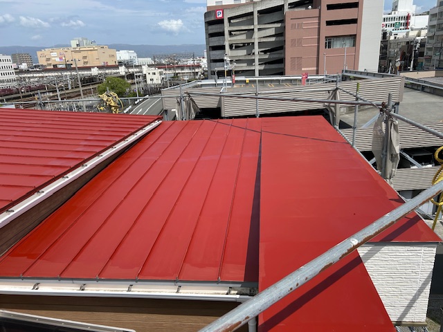 ガルバニウム横葺き屋根に2液性の強溶剤錆止め施工と外壁は1液水性系エポキシカチオンシーラー塗布施工です。